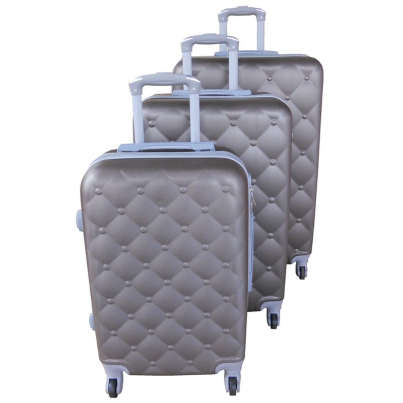 TEE3JZVLcKm6o3-Piece ABS Hard Shell Luggage Set Quilted/Striped Design and Brown