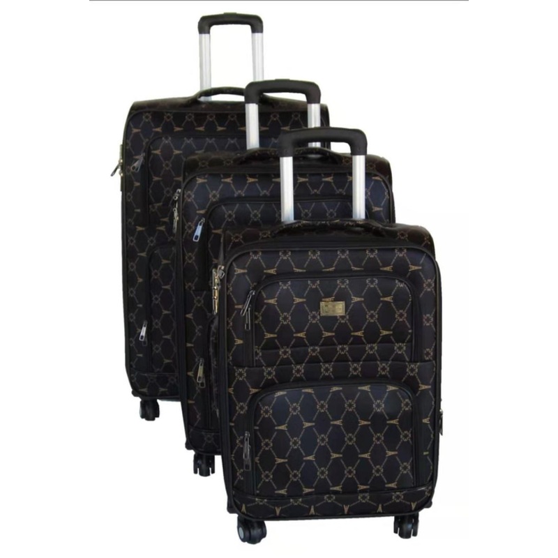 TEEfQjuXA6QoN3-Piece Geometric Floral Luggage Set Spinner Wheels & Durable PU Exterior