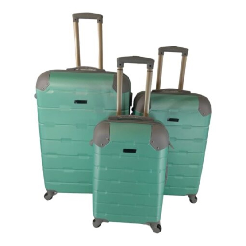 TEEMlTOJPCaoE3 Piece Hard Outer Shell Luggage Set Protected EQ-1Z Green