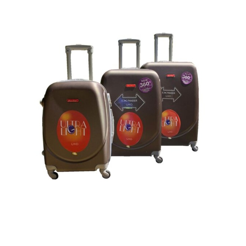 TEESk8Ogqt3Wk3 Piece Hard Outer Shell Protected Lightweight Luggage Set Brown