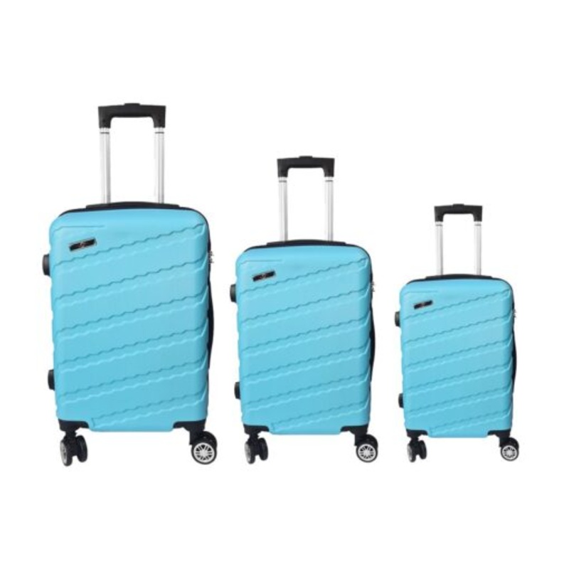 TEEnb06dO8cyA3 Piece Travel Suitcase Sizes 27 23 19 Hard Shell With Combo Lock Blue Light