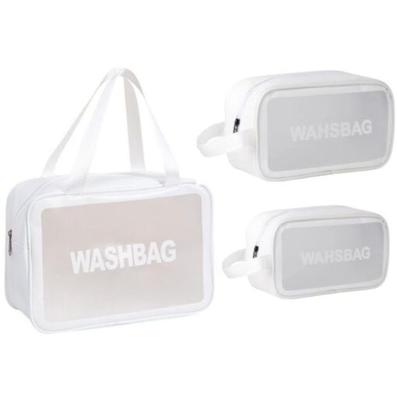TEEvN1DTDtHvG3 Piece Waterproof Toiletry Bag with Handle Easy Trade White