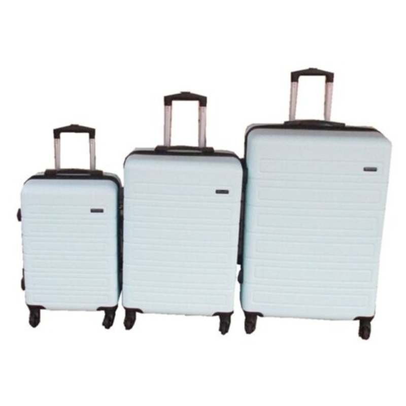 TEERS9FlVesW93-Piece White ABS Luggage Set with Spinner Wheels and Nested Design