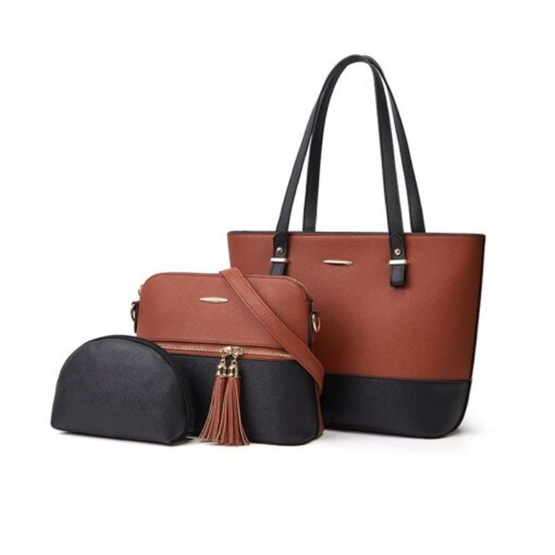 TEEz85l1iXjkh3 Pieces Purse Set Tote Satchel Hobo Handbags For Women Brown/Black