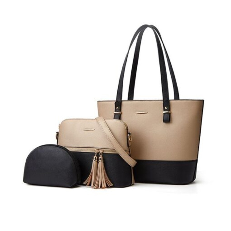 TEErIz2Js47UH3 Pieces Purse Set Tote Satchel Hobo Handbags For Women Gold/Black
