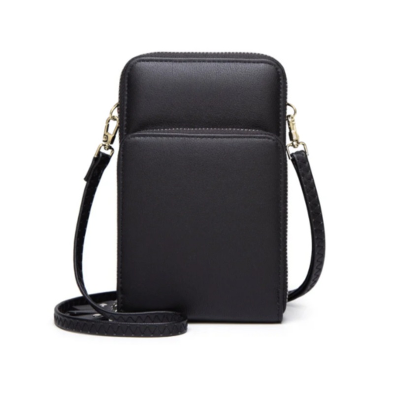 TEE3p3OFuQGxl3-Pocket Crossbody Bag with Gold Zip & Strap Black