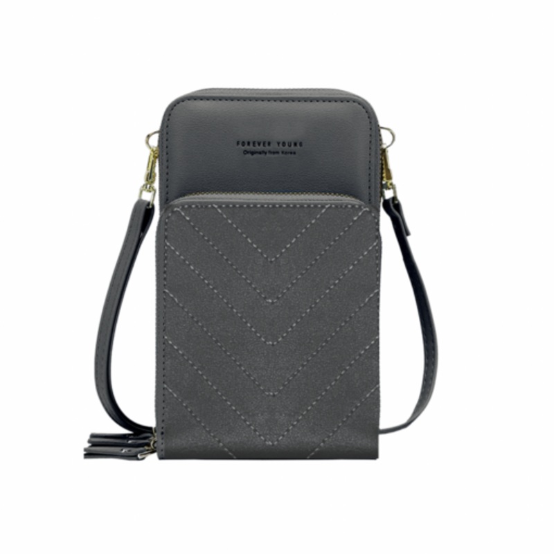 TEEse2QEfDUYk3-Pocket Crossbody Bag with V-Stitch Detail Grey