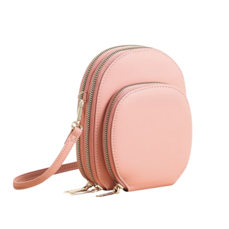 Be the first to review “3-Pocket Faux Leather Crossbody Bag Pink”