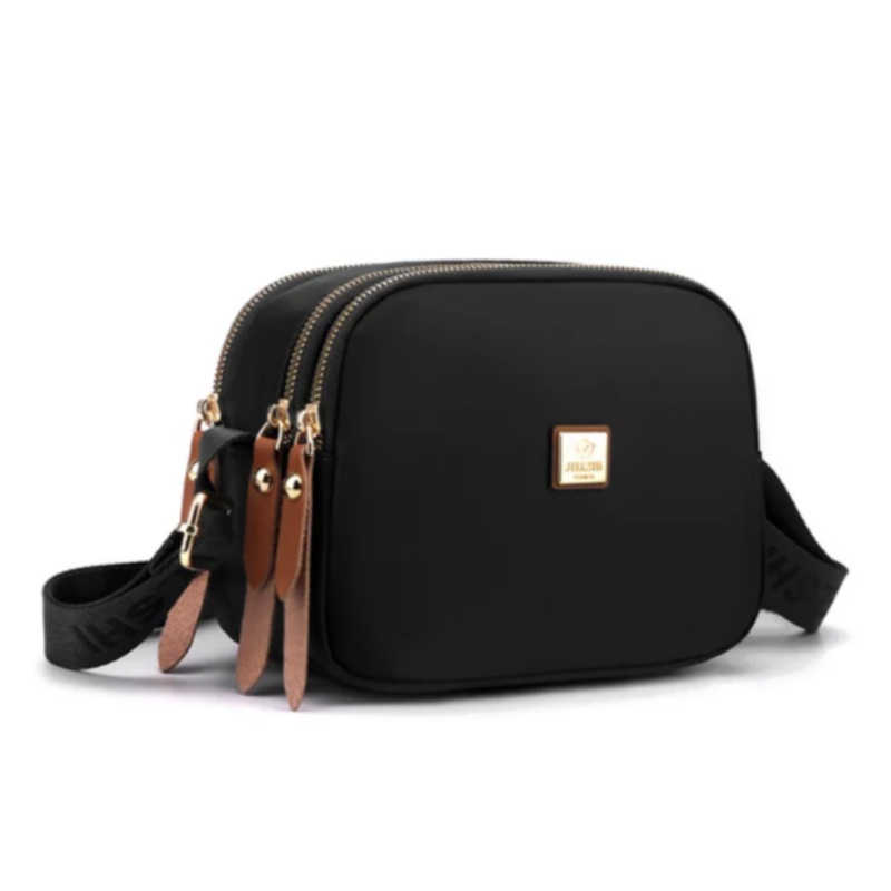TEEjQUOPAyndI3-Pocket Nylon Crossbody/Shoulder Bag Black