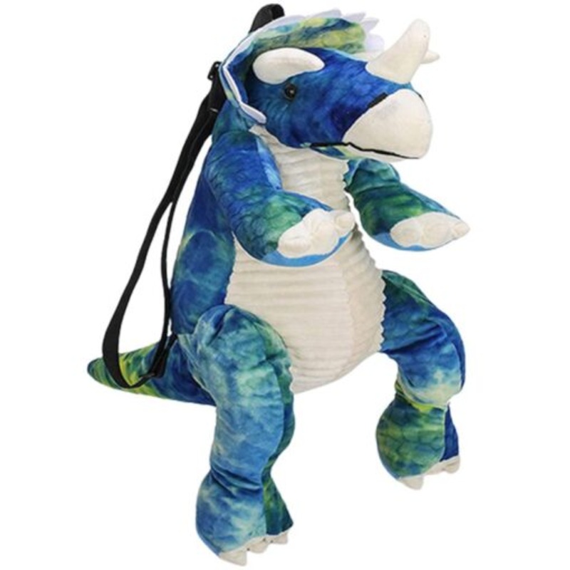 TEEyeKhEvj5SY3D Cartoon Dinosaur Kids Plush Backpack Children Animal Print Bag Boy Girl Triceratops Blue