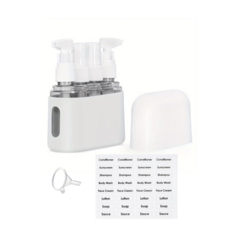 TEEhJqG6uhRDx4-in-1 Leak-Proof Travel Bottle Set with Labels & Funnel Grey