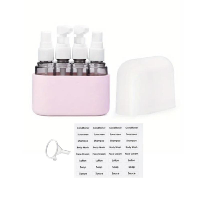 TEEOGzV6YbK9t4-in-1 Leak-Proof Travel Bottle Set with Labels & Funnel Pink