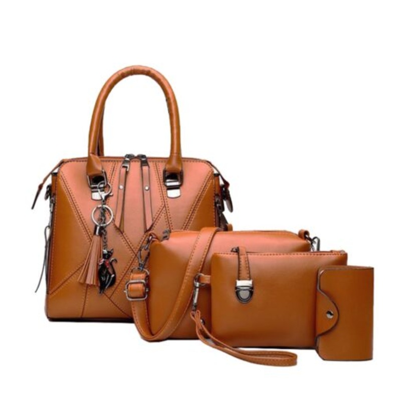 4 Pieces/Set Womens PU Messenger Tote Bag Coin Purse Card Holder Brown
