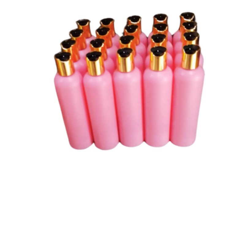 TEEtRdDCev2Tu50 x 250ml Pink HDPE Bottles with Gold + Black Press Caps