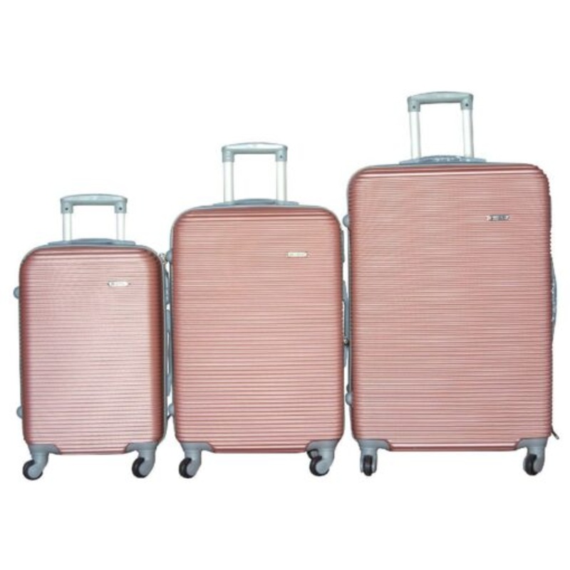 TEEOnLc7CHPehABS Grooved Design Spinner Wheels Lightweight Luggage Set 3-Piece Rose Gold