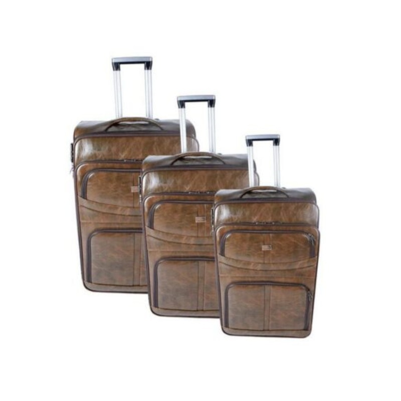 TEEXQYqzILaupAcesa Classy Luggage Set of 3 PU Leather Travel Suitcase Set Brown