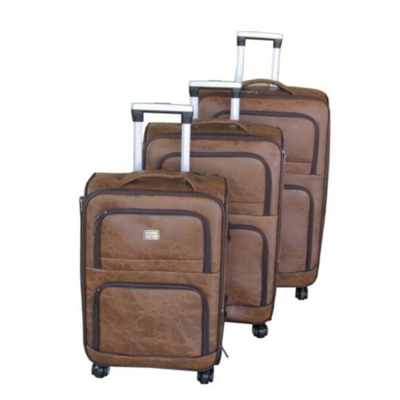 TEERhMHjZNNXnAcesa Quality Luggage Set of 3 PU Leather Travel Suitcase Set Brown