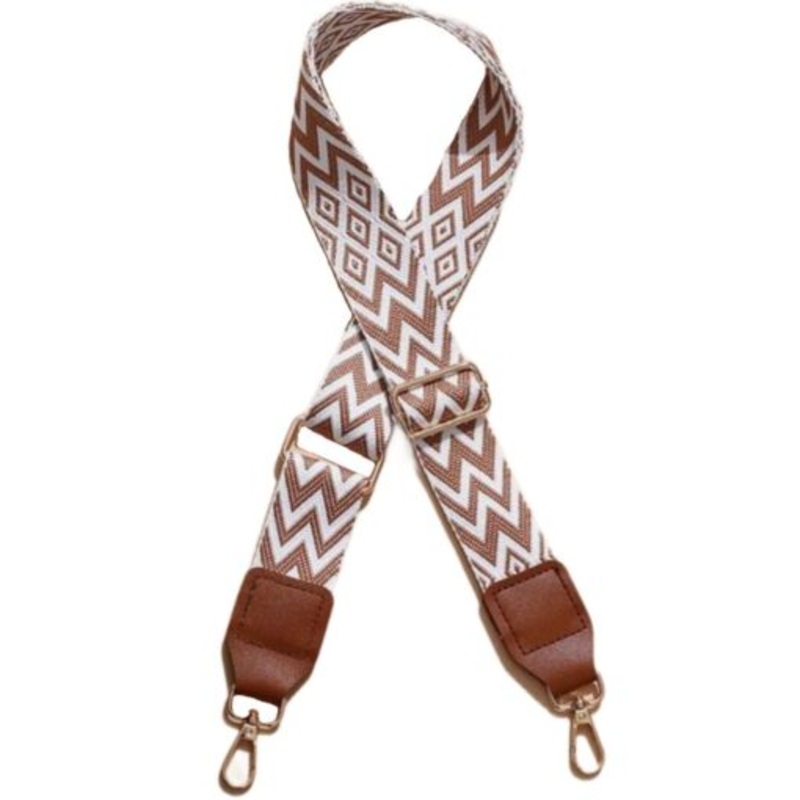 TEEEHaZFFNAOlAdjustable Bag Strap Tan and White Geometric Woven with PU Trim