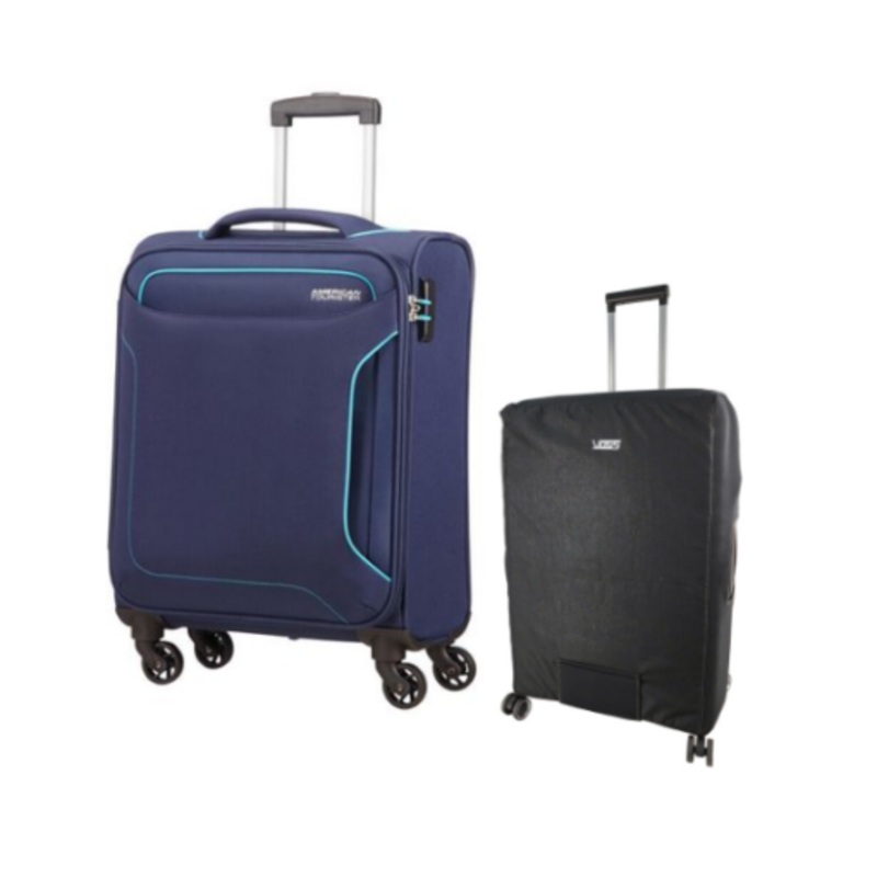TEEFQYPhSbdIOAmerican Tourister Holiday Heat 67cm Check-in Spinner + Voss Luggage Cover Navy