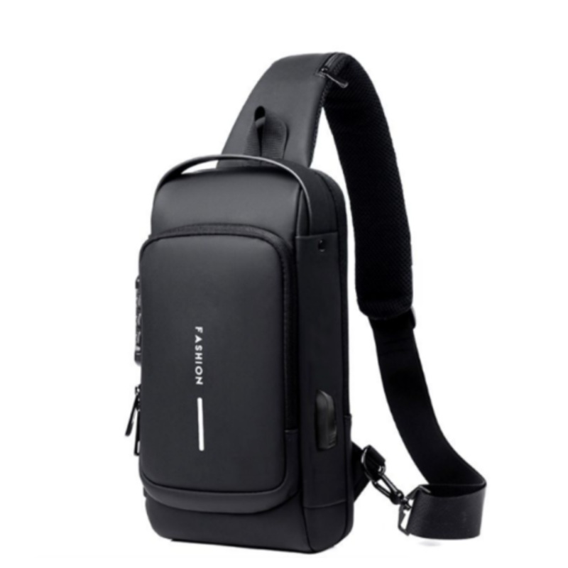 Anti-Theft Crossbody Lock Sling Chest Bag Shoulder bag With USB Port Black
