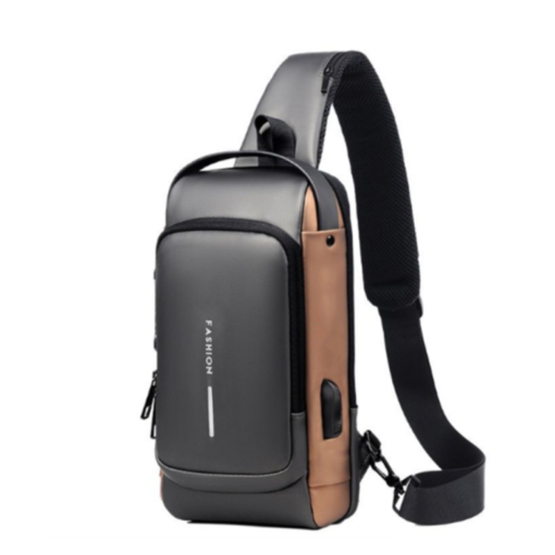 TEExzGuaYvHcRAnti-Theft Crossbody Lock Sling Chest Bag Shoulder bag With USB Port StoneGrey