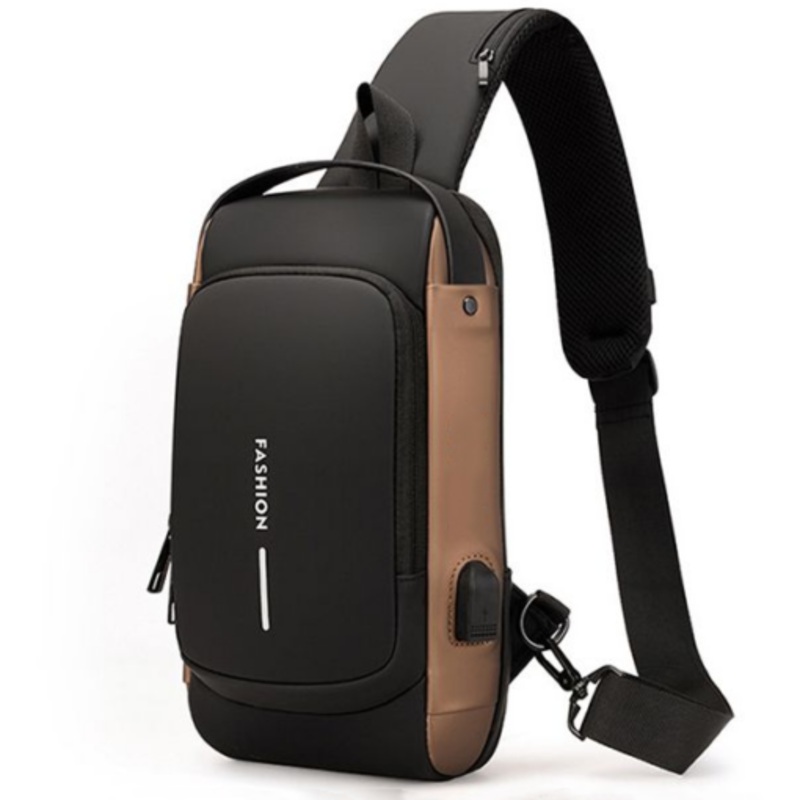 Be the first to review “Anti-Theft Lock Sling Chest Bag Shoulder Crossbody With USB Port Black Brown”