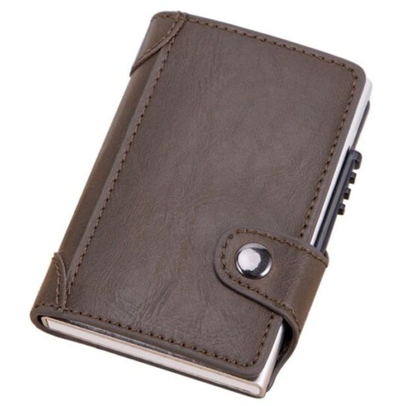 TEE398KZ3iu8PAnti-theft RFID Slide Out Aluminum and PU Leather Credit Card Wallet Brown