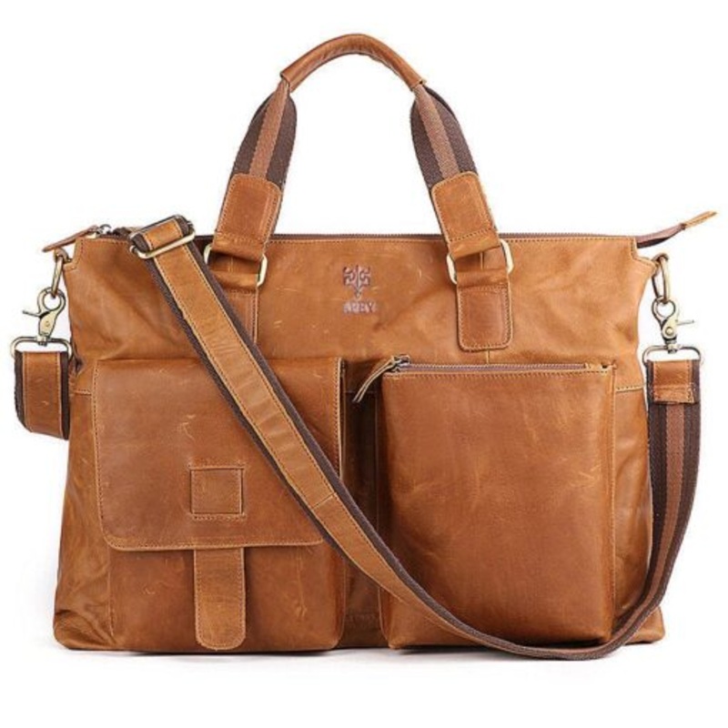 TEEQrqgSRskHoAPEY Leather Bags Briefcase Laptop Bag Premium 1st Layer Cowhide Bag Toffee