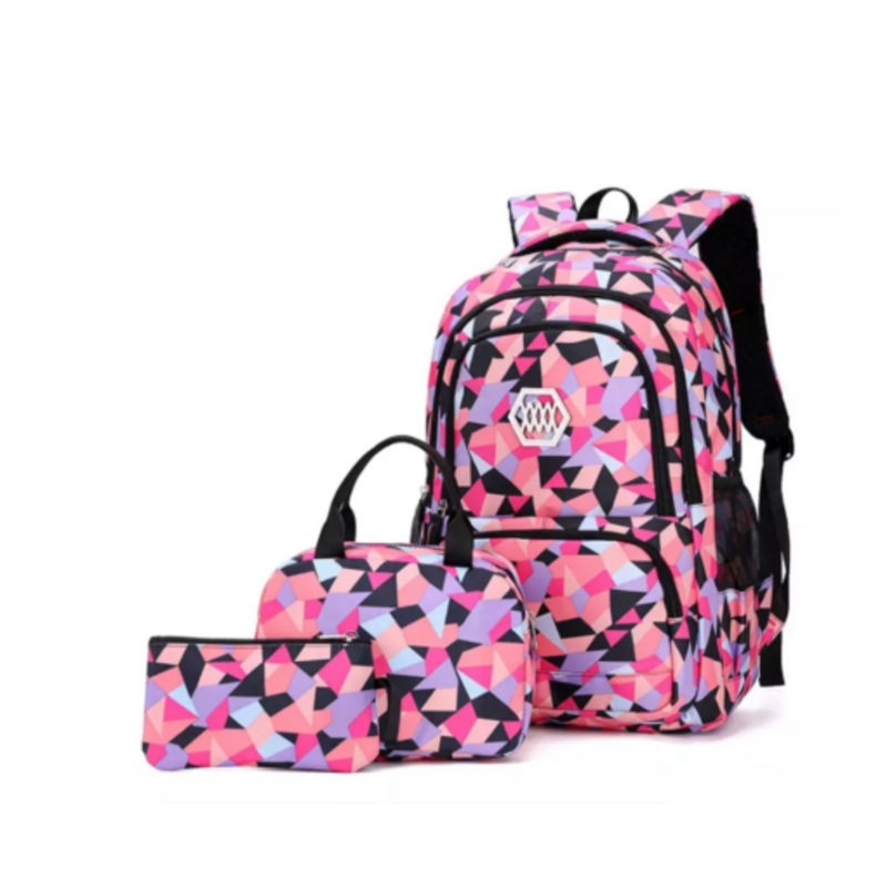 TEE68XDWeyZr4Backpack 3 Piece Set Geometric Print Waterproof Schoolbag Black/Pink