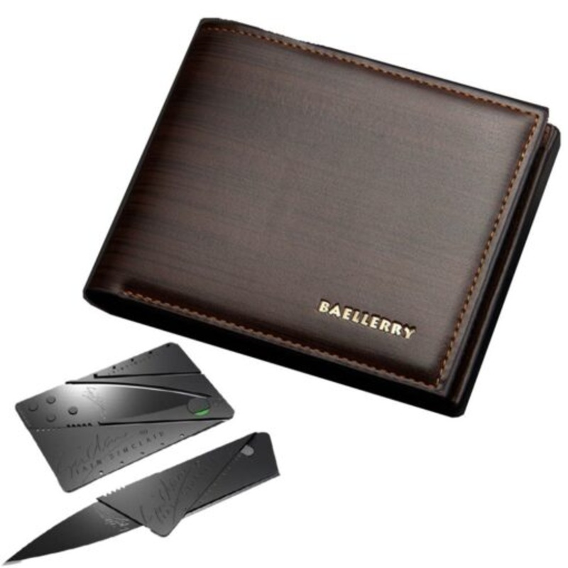 TEEibBM2F2xfEBaellerry Wallets For Men PU Leather Bi-Fold Wallet DR005 + Card Knife Dark Brown