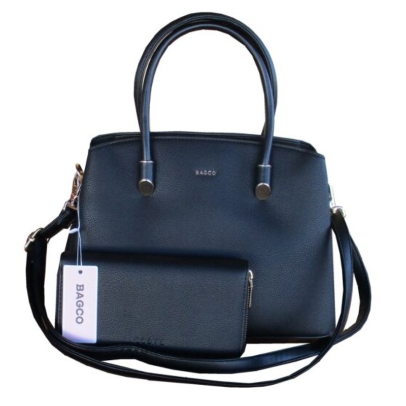 Be the first to review “BAGCO Black Imitation Leather Structured Tote with Dual Handles and Strap”