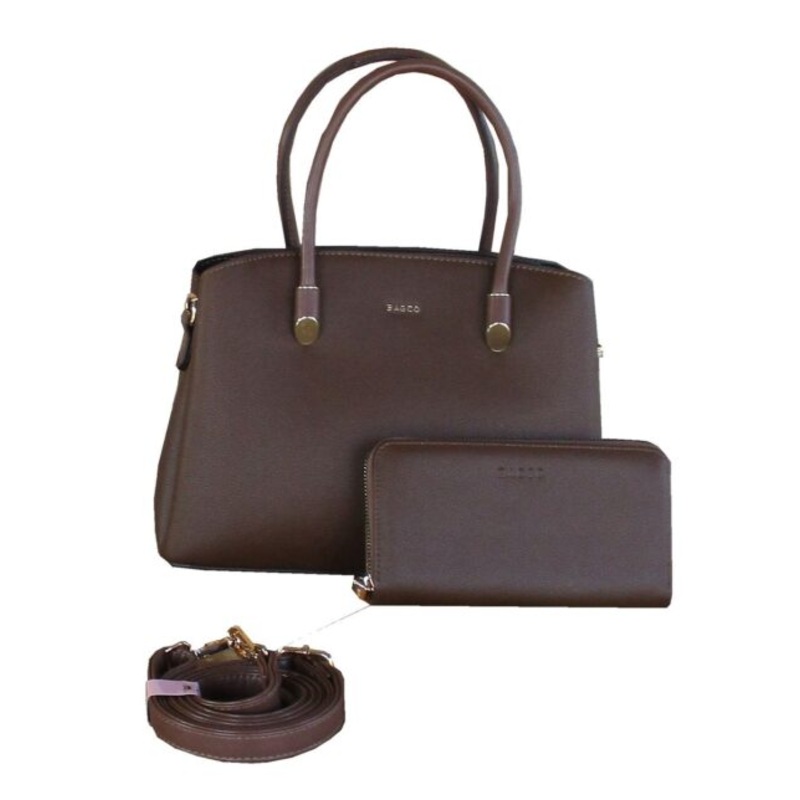 TEEwCiLve4cJxBagco Womens Handbag Set-Structured Dome Satchel Wallet and StrapGold Hardware Brown