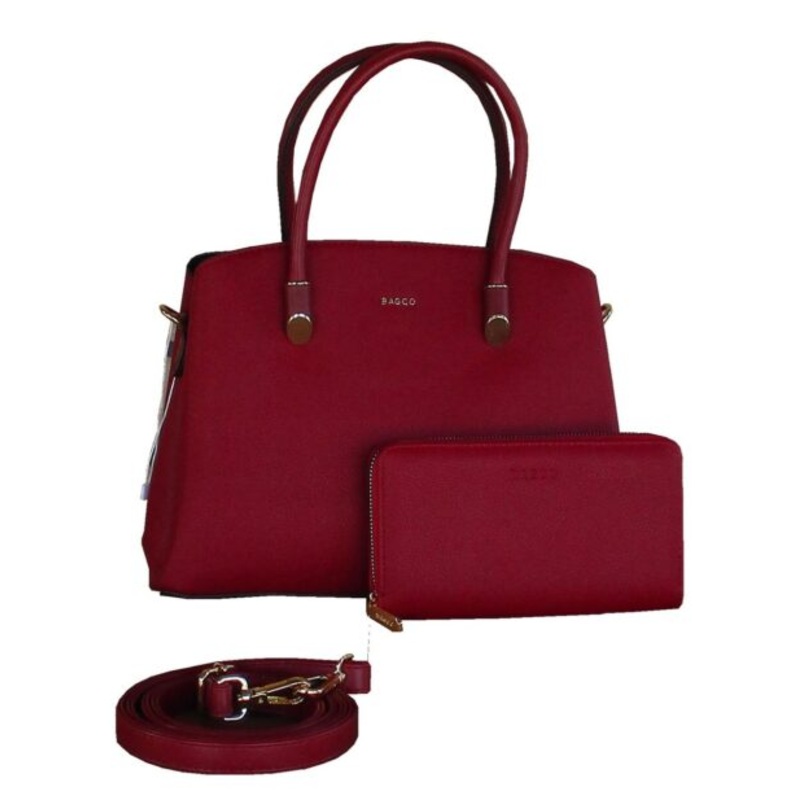 TEETFyVggnxf5Bagco Womens Handbag Set-Structured Dome Satchel Wallet and StrapGold Hardware Burgundy