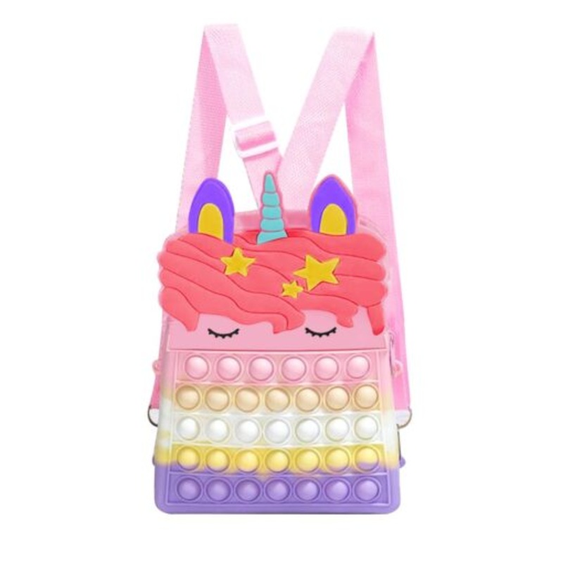 TEEvyn9rsfhEzBeautiful Silicon Kids Unicorn Design Colorblock Pop It Backpack Purple