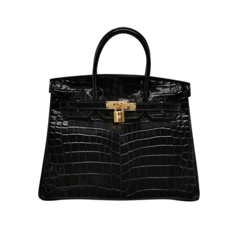 TEEkF5uwbGJ1jBir30 Luxury Ladies Crocodile Tote Design Leather Handbag with Gold Locket Graphite Black