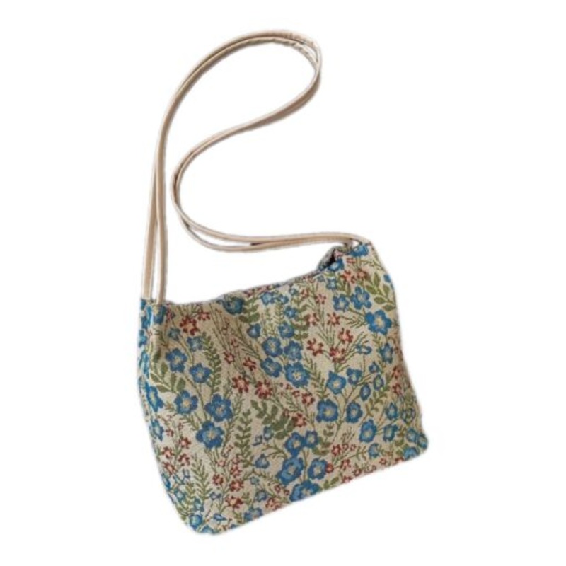 TEEzbyG78YBqXBlue Floral Pattern Beige Linen Shoulder Handbag