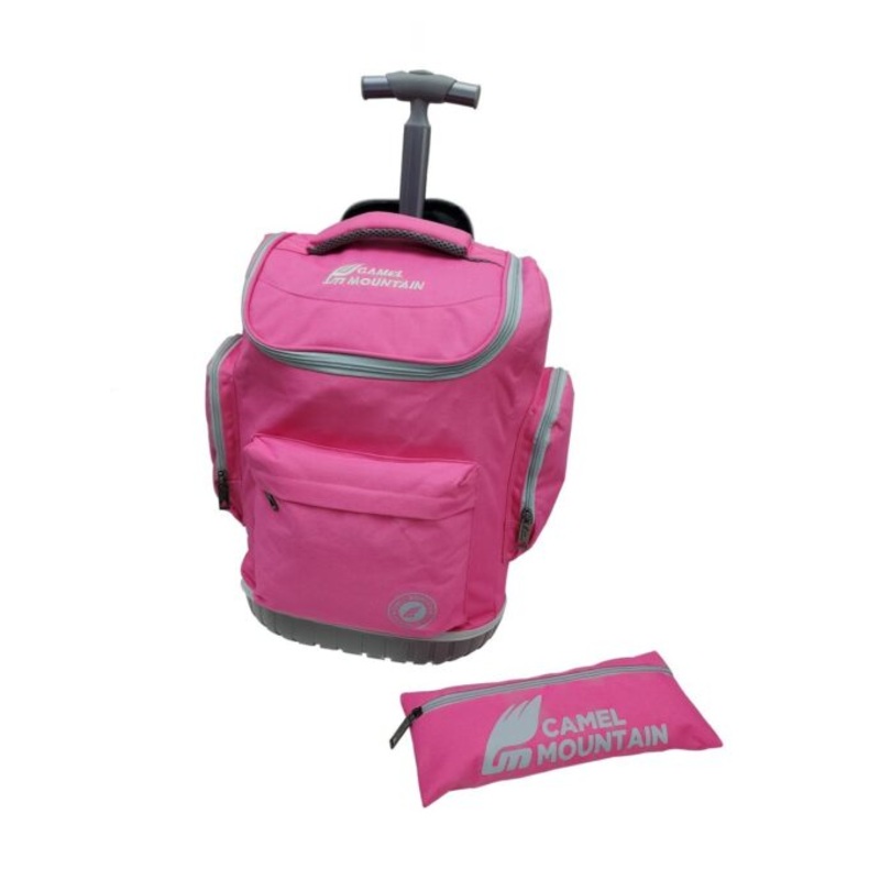 TEEzUWLRsHBsXCamel Mountain School Trolley Bag with Extendable Handles and 6 Compartment pink