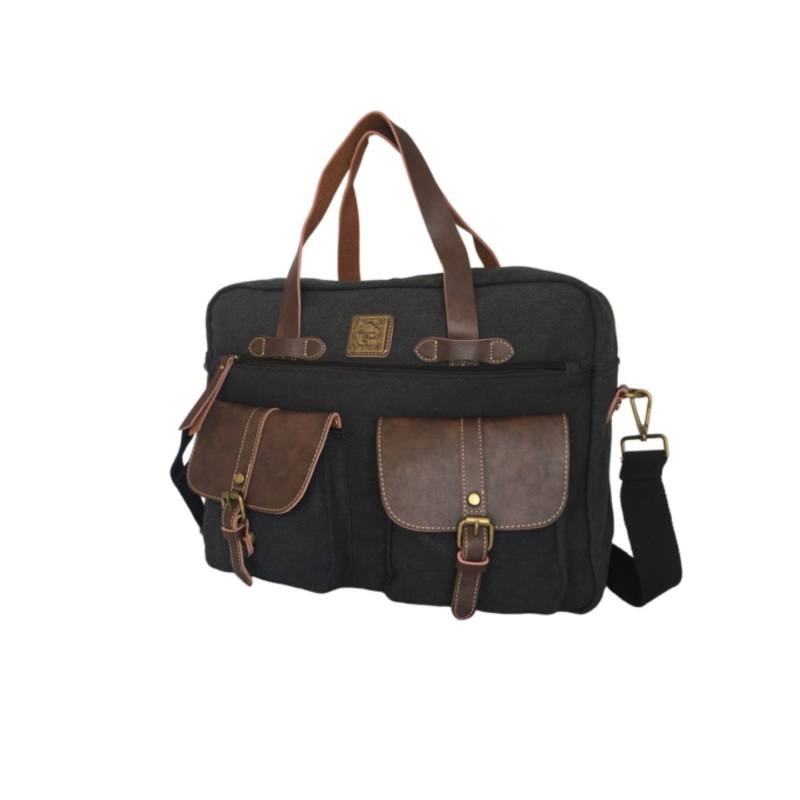 TEEwFLVCo88bMCanvas Laptop Bag With Bonded Leather Finishing 14-Inch Black