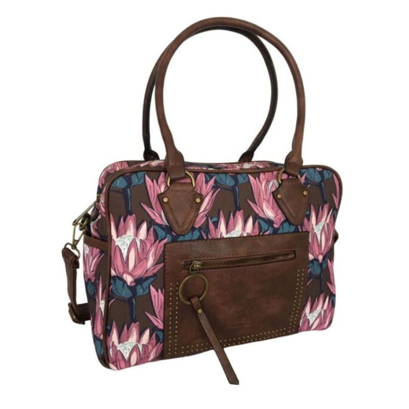 TEELOReVdDQeECanvas Overnight Bag With Protea Flower Coffee