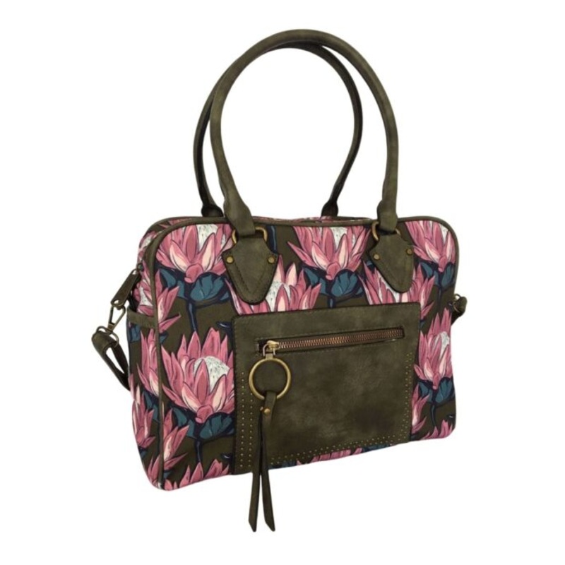 TEEdRaVLPkkvPCanvas Overnight Bag With Protea Flower Green