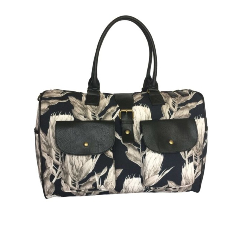 TEE6sESQaMwjSCanvas Overnight Bag With Protea Flowers Black