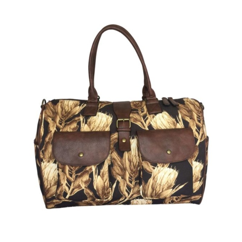 TEE7tZ2NvlfmlCanvas Travel Duffel With Protea Flowers Chocolate
