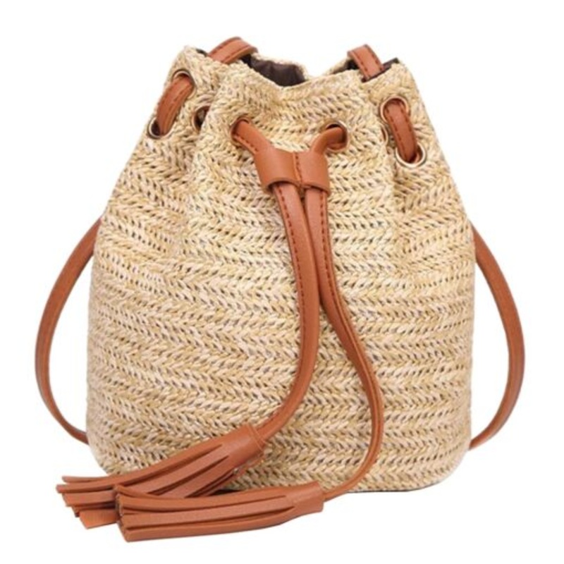 TEEdQarb1WWY6Casual Double Tassel Retro Shoulder Straw Rattan Messenger Bag for Ladies