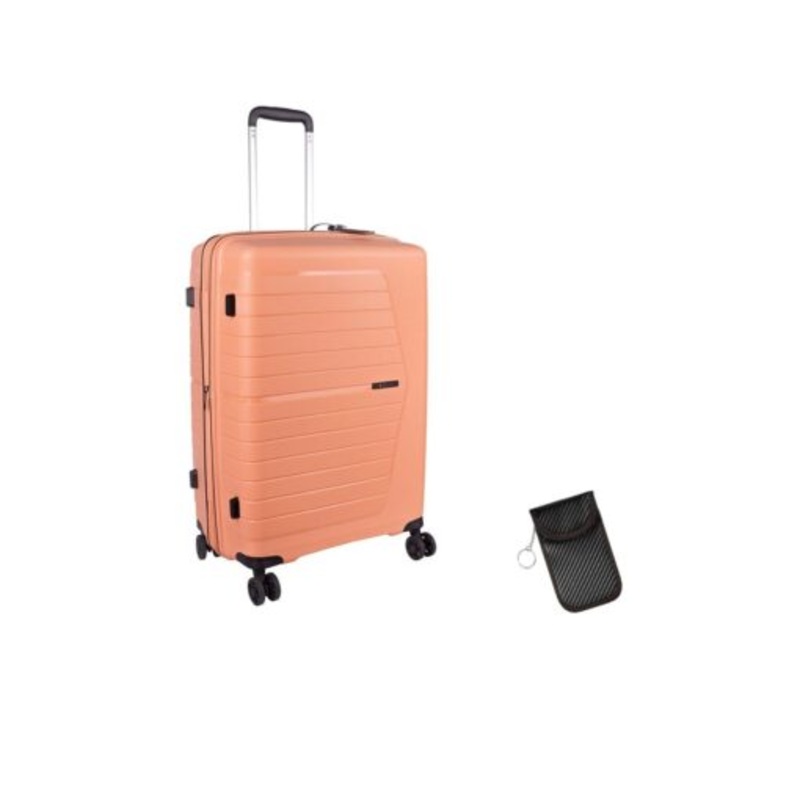 TEEli8EKTH4XuCellini Starlite Medium 4 Wheel Trolley Case Peach with RFID Luggage Tag