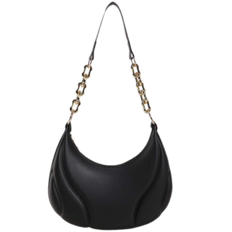 TEE54hqEHFMD9Chic Crescent Shoulder Bag with Gold Chain Strap Black