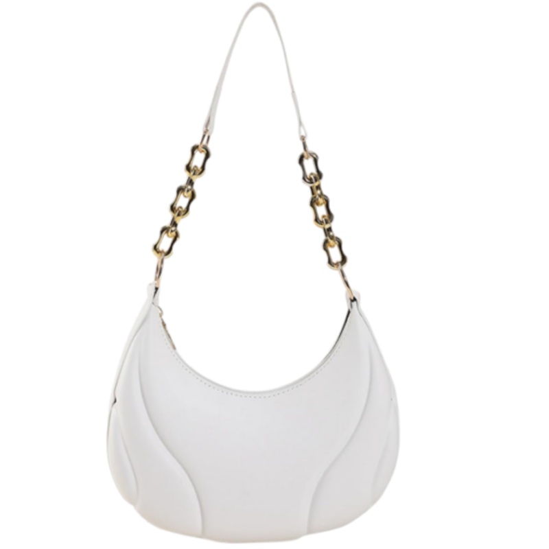 TEEQYrJyDYg75Chic Crescent Shoulder Bag with Gold Chain Strap White