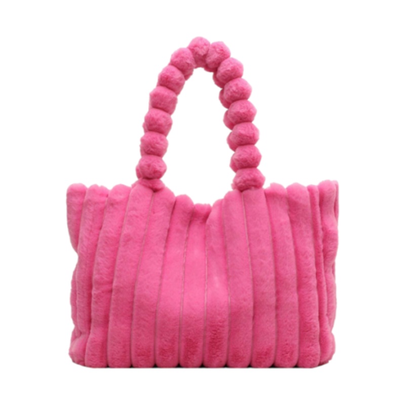 TEEq4j8HUFhpWChic Large Capacity Plush Faux Fur Tote Bag With PU Leather Interior Pink
