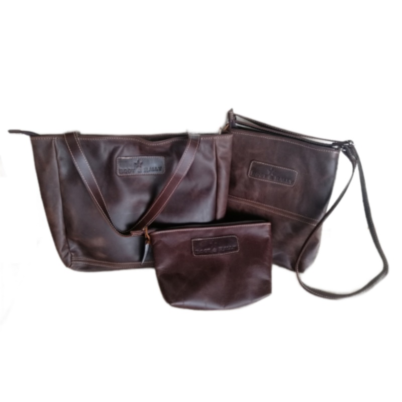Combo Gift-Lize-Marie Handbag Mini Hipster Bag and Cosmetic Bag Leather ChocBrown