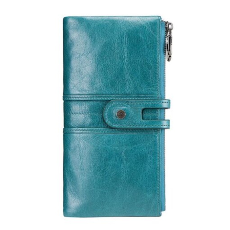 TEE11o5635MCFContacts Leather Long Zipper Ladies Clutch Wallet Blue