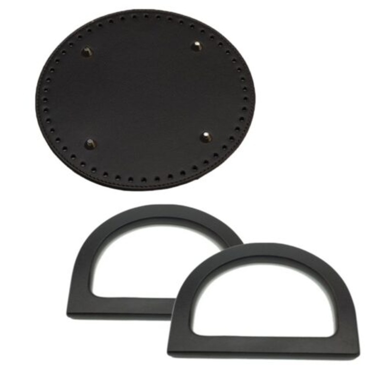 TEEHdBpSbNECTCraft Oval Bottom and Handle for Knitted Leather Bag Accessories Black